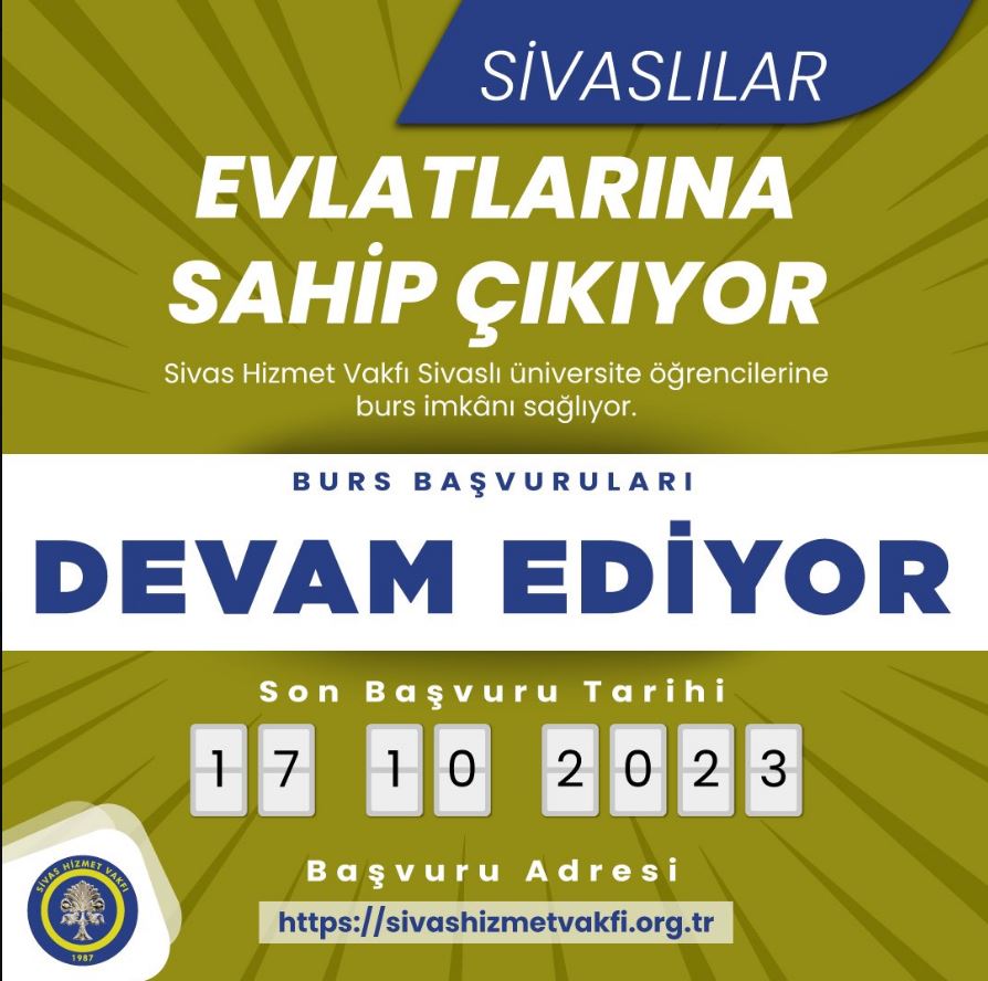 Sivas Hizmet Vakfı ve hayırseverlerin katkılarıyla 2023-2024 eğitim yılı burs başvuruları, 17 Ekim’e kadar devam ediyor." ifadelerine yer verildi.