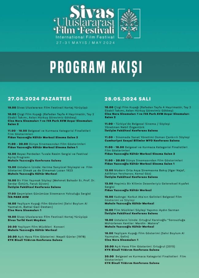 Sivas Valiliği sosyal medya hesabından "Sivas Uluslararası Film Festivali" programını duyurdu.