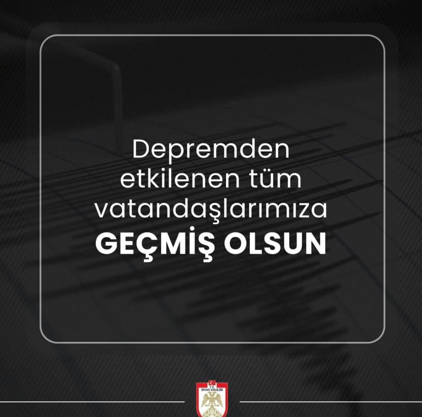 “Merkez üssü Amasya - Taşova olan ve 4.6 büyüklüğünde yaşanan deprem, Sivas il merkezi ve bazı ilçelerimizden de hafif şekilde hissedilmiştir. Sivas il sınırları içinde herhangi bir olumsuz durum bildirilmemiştir. Depremden etkilenen tüm vatandaşlarımıza geçmiş olsun dileklerimizi iletiyoruz. Allah ülkemizi her türlü afetlerden korusun.”