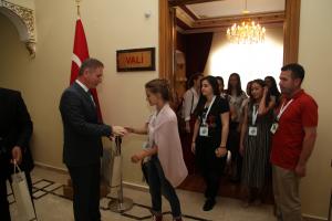 Sivas Valisi Davut Gül, Cumhuriyet Üniversitesinin davetlisi olarak kente gelen yabancı öğrencileri makamında kabul etti.