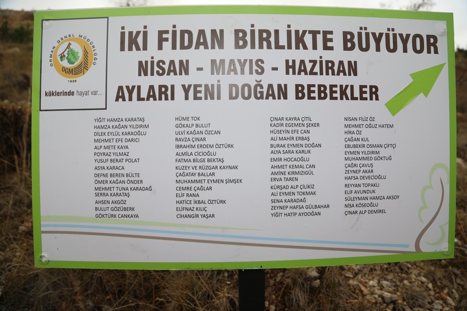 Programda konuşan Orman İşletme Müdürü Sefa Duman, geçen sene başlatılan projede; Tavra Deresi bölgesindeki 20 dekar alana bugüne kadar doğan 6 bin bebek için fidan dikildiğini söyledi. Bebeklerin isimlerinin tabelalara yazıldığını anlatan Duman, projenin sürekliliğinin sağlanacağını söyledi.