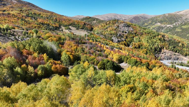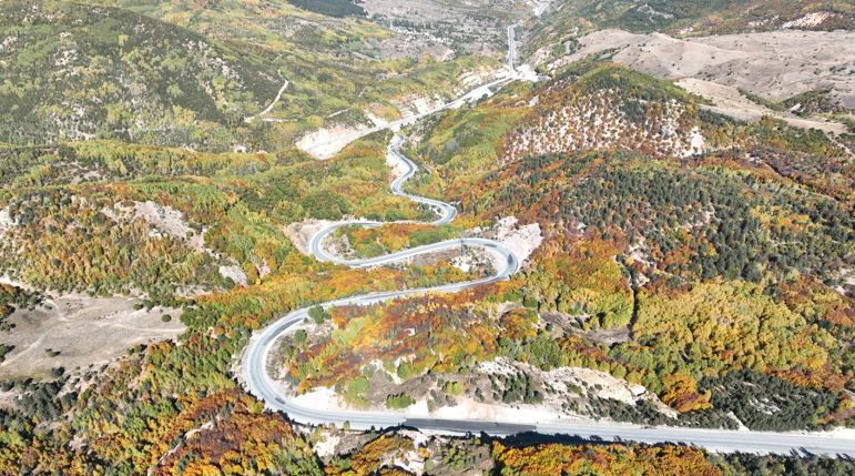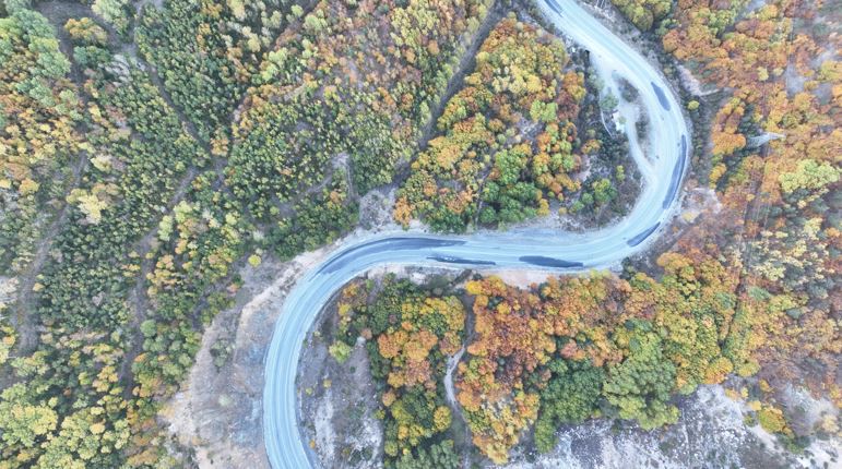 Karadeniz Bölgesi'nin İç Anadolu Bölgesi'ne açılan kapılarından 2010 rakımlı Geminbeli Geçidi'nde çekilen dron görüntülerini sosyal medya hesabından paylaşan Şimşek, "Dağları, ormanları ve uzun ince yollarını sonbaharın mest eden güzellikleri bürüdü. Sivas, her mevsim bir başka güzel." ifadelerini kullandı. (AA)