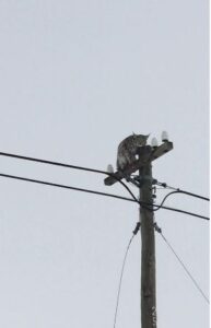 Telefon direğine tırmanan vaşağı “gel pisi pisi” diye çağırdı