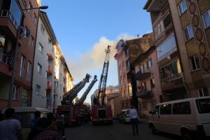 İtfaiye ekipleri uzun süren çalışma sonucu apartmanın terasındaki yangını söndürdü.