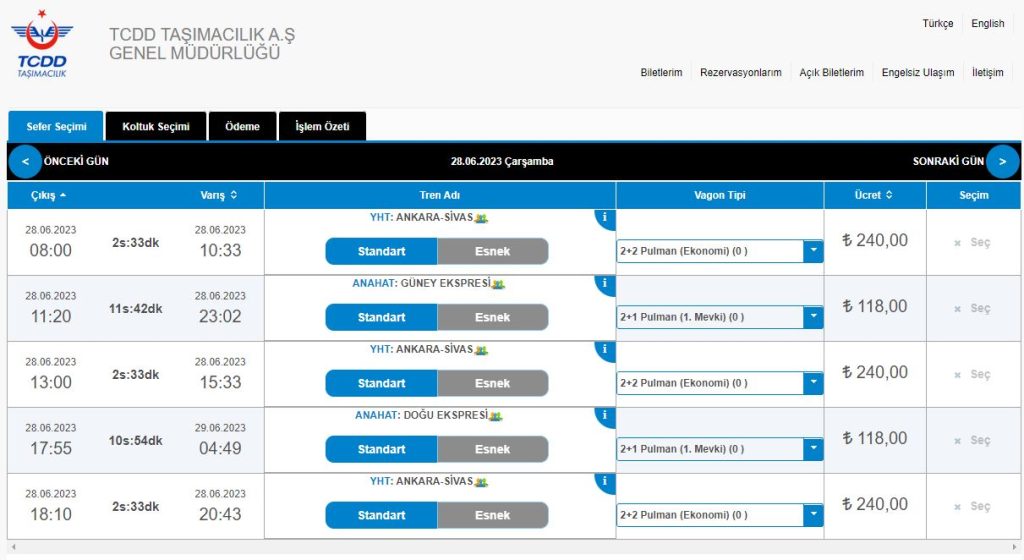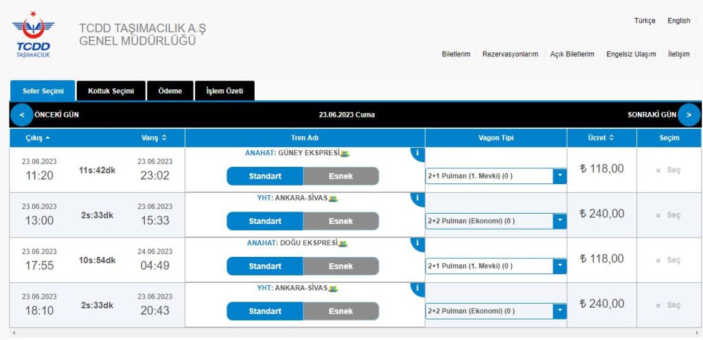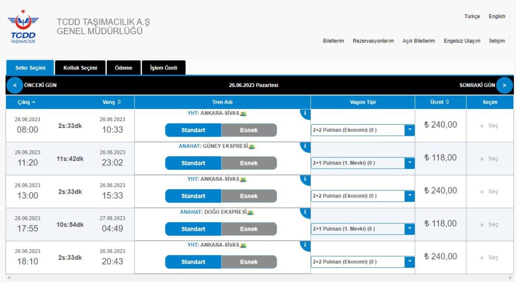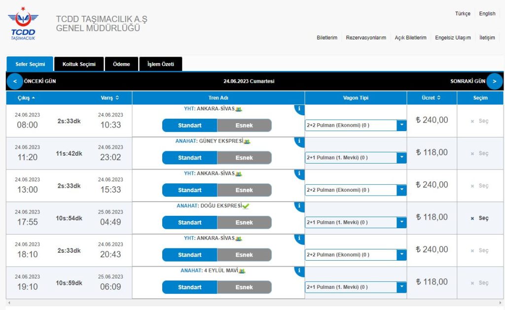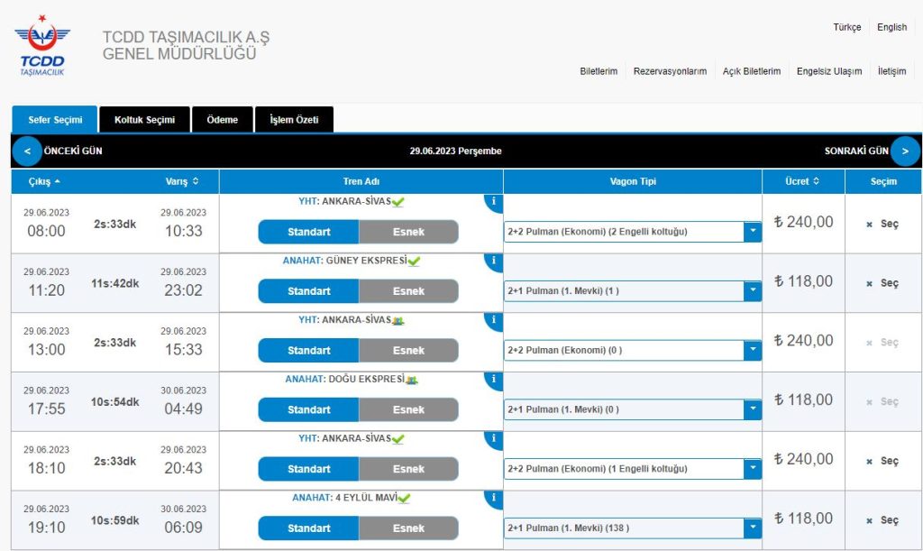 Bugün itibari ile Ankara-Sivas hızlı tren hattı ile Sivas'a gelmek isteyen vatandaşlar bilet bulamıyorlar.