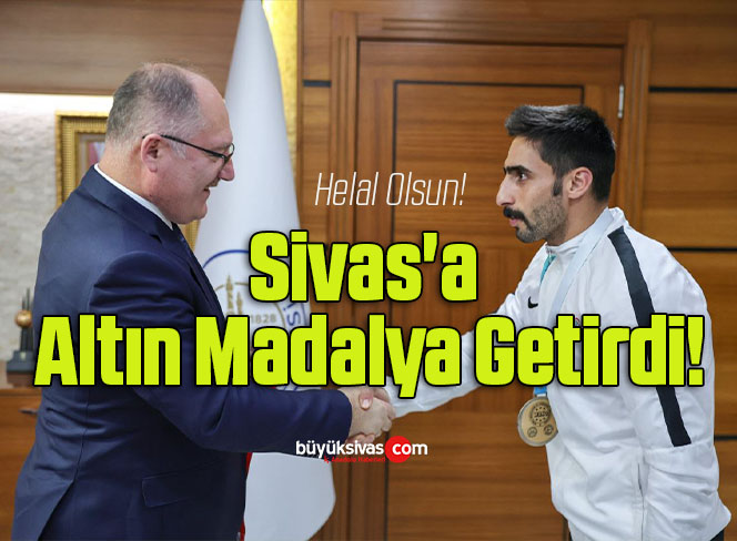 Avrupa Kick Boks Şampiyonası Erkekler 'full contact' 67 kiloda altın madalya kazanan Gaziler Engelli Spor Kulübü sporcusu, Polis Memuru Sivaslı Muhammet Süleyman Gülle, Sivas Belediye Başkanı Hilmi Bilgin'i ziyaret etti.