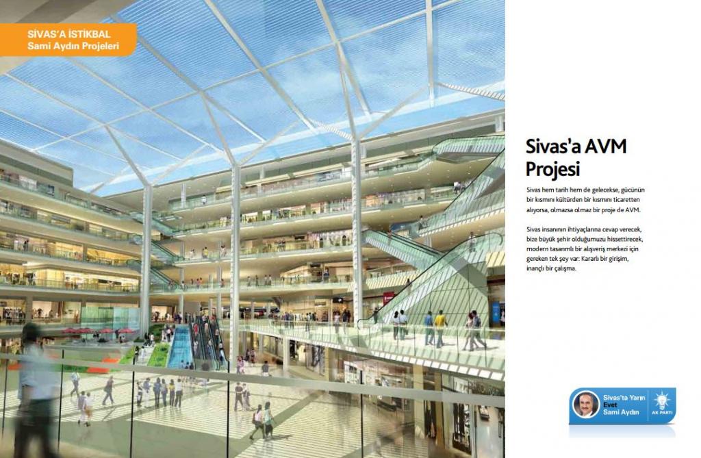 Belediye Başkanlığı seçim döneminde Sivas'a İstikbal, Sami Aydın Projeleri kitapçığında da yer alan Sivas AVM Projesi böylece yatırımcının önü açılarak faaliyete geçmiş oldu. Sami Aydın'ın vaatleri arasında yer alan ve kitapçıkta yer alan AVM Projesi hakkında şu açıklamalar yer alıyordu;