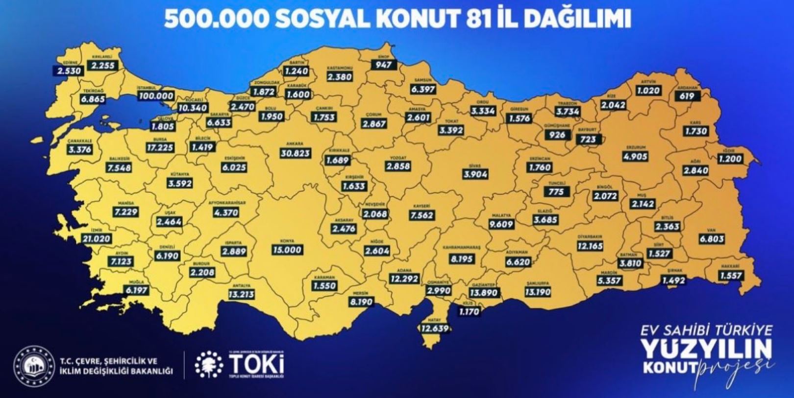 Toplu Konut İdaresi Başkanlığı (TOKİ) tarafından hayata geçirilecek projede;