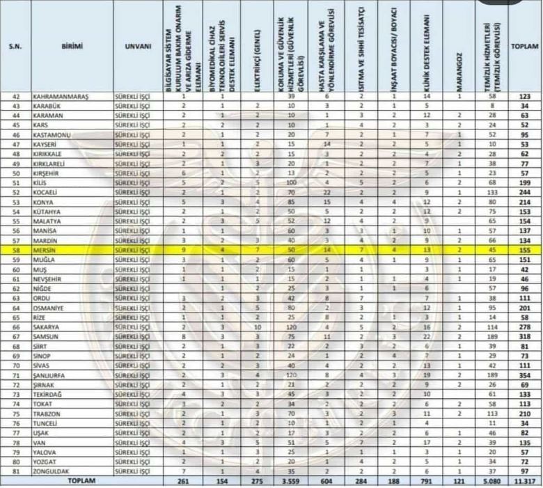 Sağlık Bakanlığı İŞKUR İlanları 11317 Hastanelere Kadrolu İşçi Alımı Yapacak. Bu kontenjandan Sivas'a düşen pay ise 111 kişi oldu.