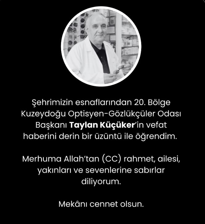Sivas’ın sevilen esnaflarından, 20. Bölge Kuzeydoğu Optisyen-Gözlükçüler Odası Başkanı Taylan Küçüker’in vefat haberi kentte derin üzüntü yarattı.
