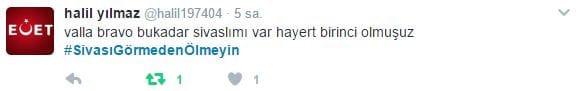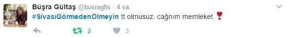 Büyük Sivas Haber olarak, Sivas’ın tanıtımına ve gelişimine katkı sağlamak amacıyla "#SivasıGörmedenÖlmeyin" hashtagi ile dün itibariyle sosyal medyada bir kampanya başlatmıştık.