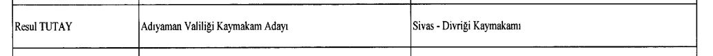 Adıyaman Valiliği Kaymakam Adayı Resul Tutay Divriği Kaymakamı olarak atandı.