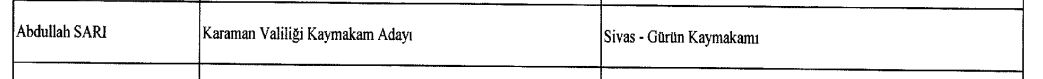 Karaman Valiliği Kaymakam Adayı Abdullah Sarı Gürün Kaymakamı olarak,