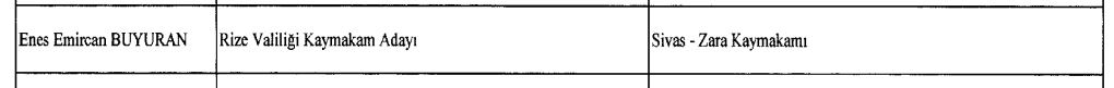 Rize Valiliği Kaymakam Adayı Enes Emircan Buyuran Zara Kaymakamı olarak,