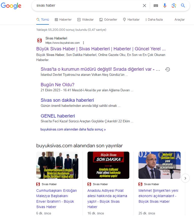 İnternet haber sitelerinin varoluş sebebi olan Google'daki "sivas haber" aramasında ilk üç sırada buyuksivas.com, buyuksivas.com facebook ve buyuksivas.com twitter hesapları yer alırken, kendi kendimizin rakibi olmanın haklı gururunu yaşıyoruz...
