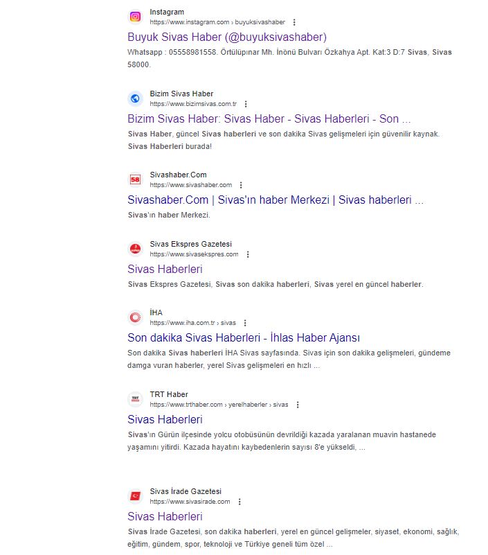 buyuksivas.com dışında kalan Sivas'taki internet haber sitelerinde güblük ziyaretçi trafiğine göre google sıralama yaparken, aşağıda listelenen siteler belirli dönemlerde kendi aralarında sıralamada birbirlerini geçebiliyor...