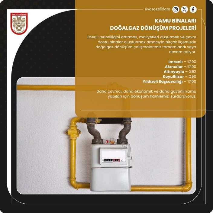 Sivas İl Özel İdaresi, kamu binalarında enerji verimliliğini artırmak ve daha çevre dostu yapılar oluşturmak amacıyla başlattığı doğalgaz dönüşüm çalışmalarının birçok ilçede tamamlandığını duyurdu.