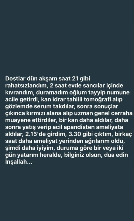 Topgül'ün rahatsızlanması sonucu gittiği hastanede apar topar ameliyata alındı.
