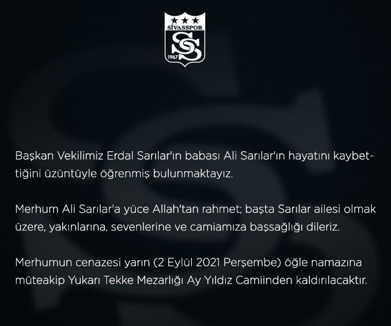 SİVASSPOR TAZİYE MESAJI YAYINLADI