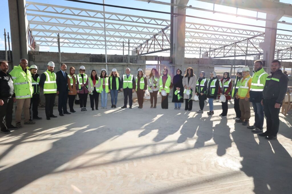 Prefabrik beton elemanları üretimi yapacak fabrikayı gezen Vali Şimşek, bu ay içerisinde üretime başlayacak firmayı tebrik etti.