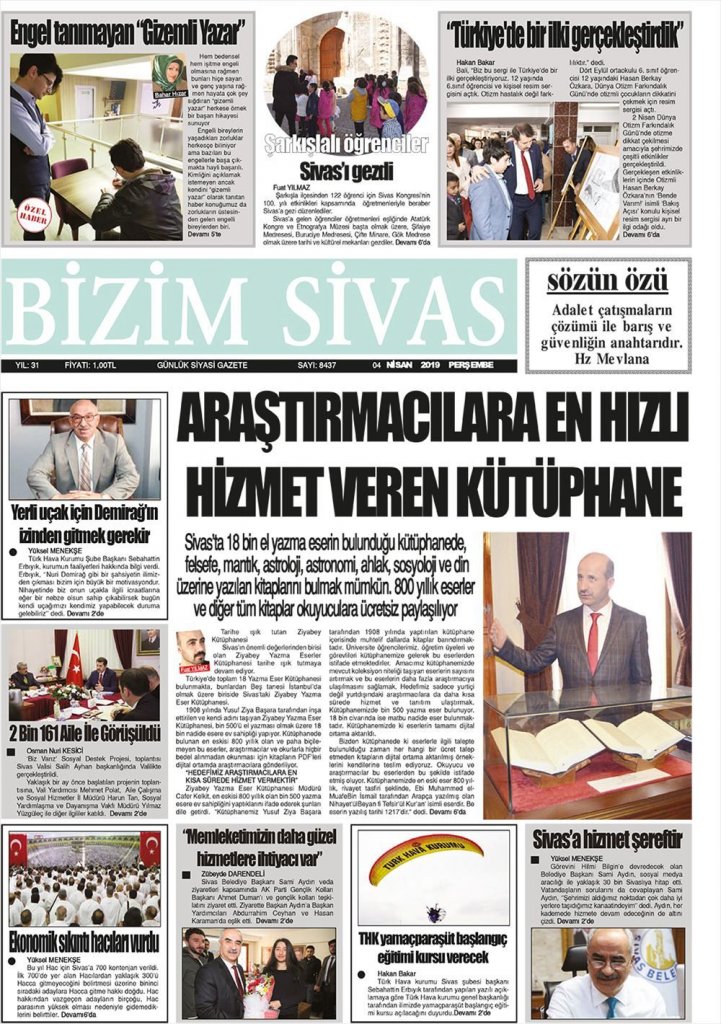 Büyük Sivas Medya Grubu bünyesinde yayın hayatını sürdüren Büyük Sivas Gazetesi olarak Sivas'ın ve Sivaslıların doğru bilgiye ulaşabilmesi adına emek veren diğer meslektaşlarımıza teşekkür ediyoruz.