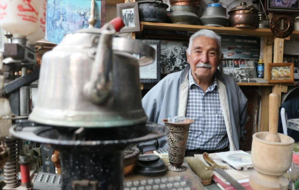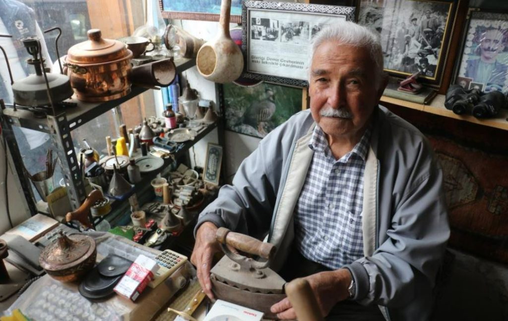 Sivas’ın Divriği ilçesinde doğup büyüyen 92 yaşındaki Ömer Arslanburç, 80 senedir aynı dükkanda esnaflık yapıyor. Av bayii işletmeciliği yaparken küçük yaşta antika eşyalara merak salan Arslanburç, eşyaların alım satımını yapıyor. Çevresinde bulunan insanların getirdiği antika eşyaları değerinde alıp sattığını ifade eden Arslanburç, “Burada bakır, silah, eski kantarlar, gaz ocakları, eski halı ve kilimler. Eski bulunmayan şeyler var. Bu işe merakla başladım. Önce eski silahlarla başladım, ağızdan dolma silahlarla. Benim sattığım silahlar Topkapı Sarayı'nda sergileniyor. Daha sonrasında işleri geliştirdik, gelen antikaları aldık, birçoğunu da sattık. Antikaları alırken eski olmasına dikkat ediyorum. Her yerde bulunmayacak. Örneğin gaz ocağı artık bulunmuyor, kantar bulunmuyor. Önceden topraktan çıkma antikalar geliyordu, onları alıyordum” dedi.