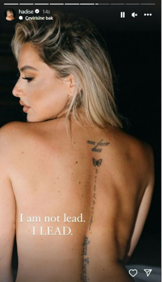 Hadise'nin sırtındaki dövme dikkatleri üzerine çekti. Şarkıcı paylaşıma "Ben lider değilim, önderim" notunu düştü.