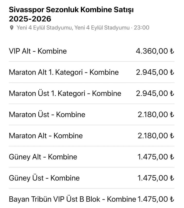 Sivasspor, 2025-2026 sezonu için Yeni 4 Eylül Stadyumu’nda geçerli olacak sezonluk kombine biletlerin satışına başladı.