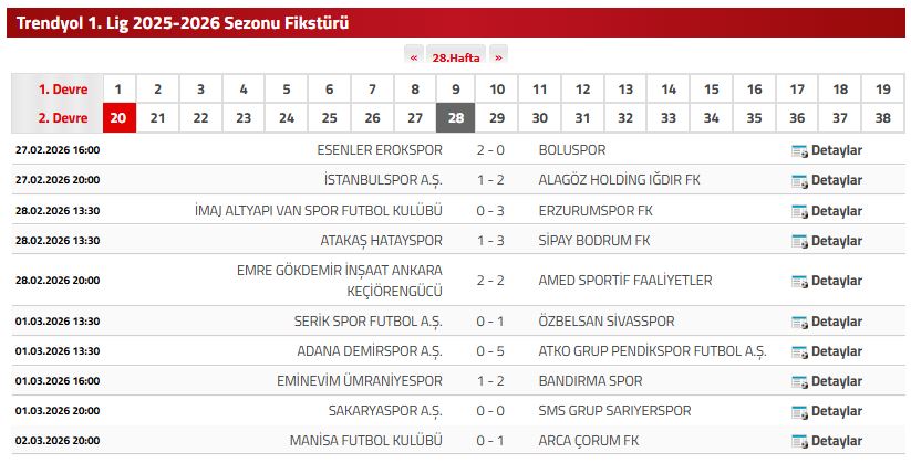 Sivasspor, Trendyol 1. Lig, Serik Spor, 28. hafta, puan durumu