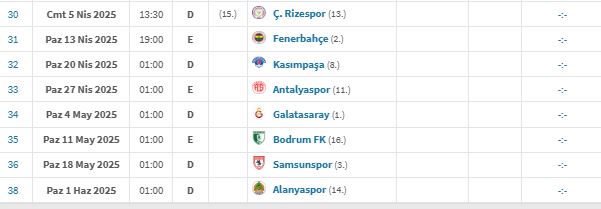 Özellikle Konyaspor, Pendikspor, Karagümrük ve Kayserispor maçları, küme düşme hattını doğrudan ilgilendiren 6 puanlık karşılaşmalar olacak.