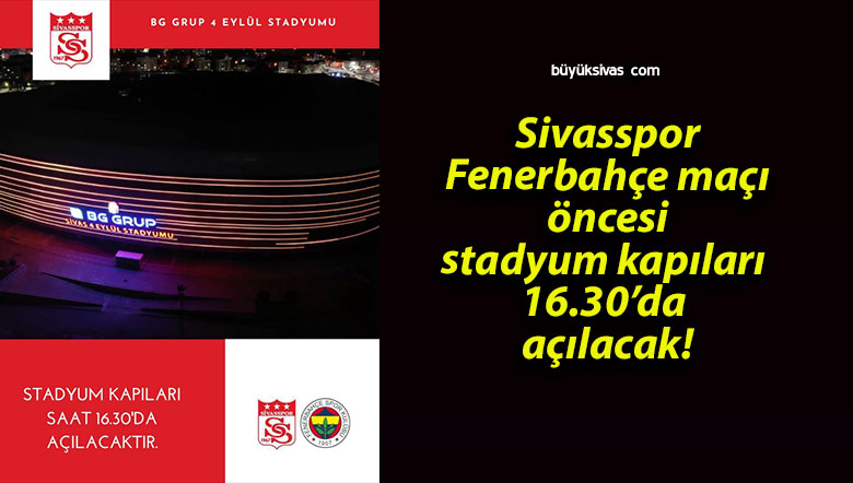 Net Global Sivasspor’un, Trendyol Süper Lig’in 31. haftasında bugün saat 19.00’da Fenerbahçe ile oynayacağı kritik karşılaşma öncesinde stadyum kapılarının saat 16.30’da açılacağı duyuruldu.