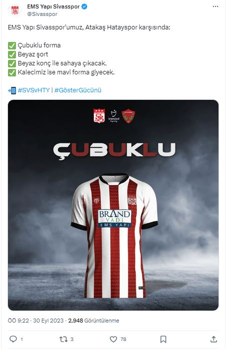 Sivasspor saat 13:30'da başlayacak müsabakada çubuklu forması ile mücadele edecek.