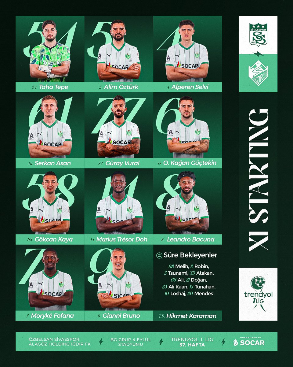 Sivasspor – Iğdır FK Maçında İlk 11’ler Belli Oldu.. Özbelsan Sivasspor, Trendyol 1. Lig’de sezonun son iç saha maçında Alagöz Holding Iğdır FK ile BG Grup 4 Eylül Stadyumu’nda karşı karşıya geliyor. Büyük önem taşıyan mücadele öncesinde her iki takımın ilk 11’leri netleşti.