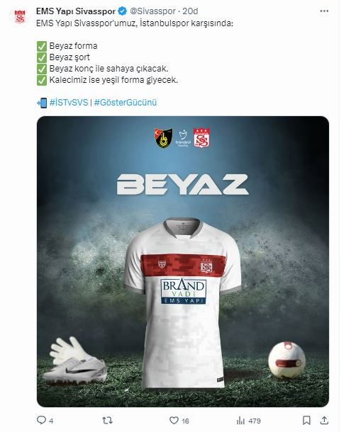Sivasspor sosyal medya hesabından yapılan açıklamada Sivasspor İstanbulspor karşılaşmasında BEYAZ forması ile mücadele edecek.