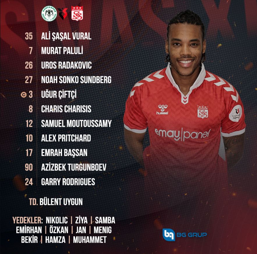 Konyaspor: Slowik, Demirbağ, Pedrinho, Aleksic, Guilherme, Jevtovic, Ndao, Akyol, Bazoer, Nayir, Boranijasevic