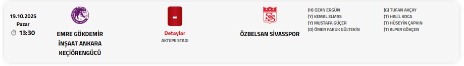 Trendyol 1. Lig’in 10. haftasında Özbelsan Sivasspor, deplasmanda Emre Gökdemir İnşaat Ankara Keçiörengücü ile karşı karşıya gelecek.