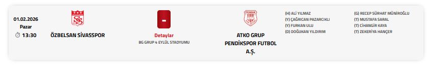 Sivasspor, Pendikspor, Trendyol 1. Lig, Sivasspor Pendikspor maçı, maç hakemi, Ali Yılmaz, Sivas spor, futbol haberleri