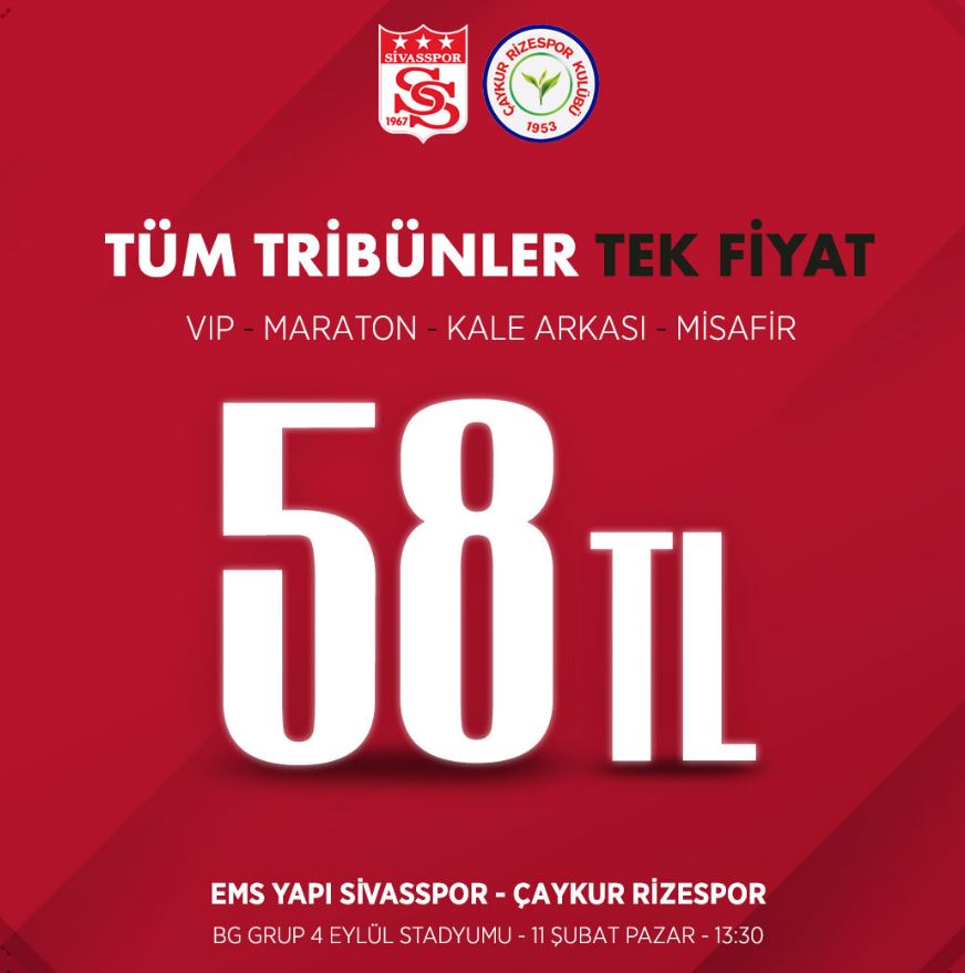 Sivasspor geçtiğimiz günlerde Trendyol Süper Lig'in 25. Haftasında Sivas'ta oynayacağı Çaykur Rizespor bilet fiyatları hakkında açıklama yapmıştı.