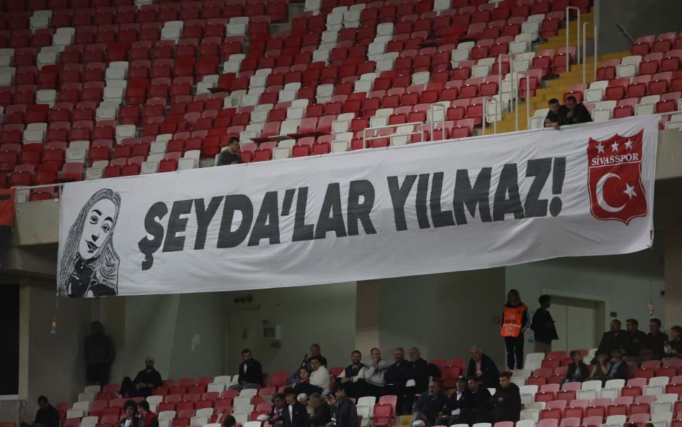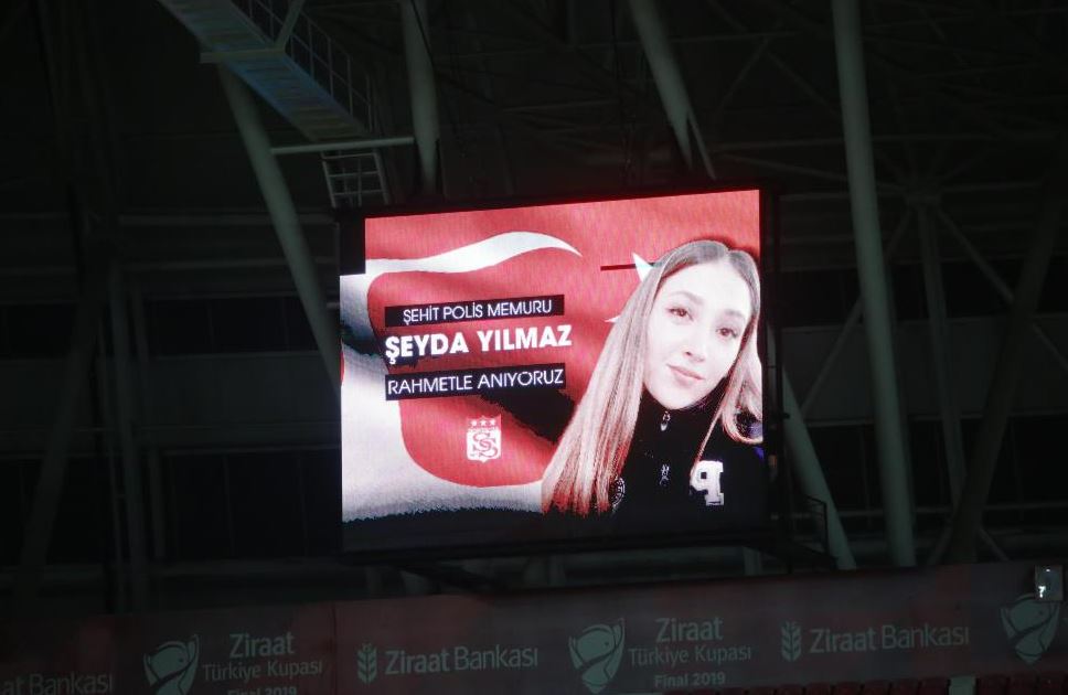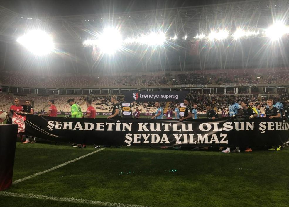 Sivasspor taraftar grubu Kırmızı-Duvar da şehit polis Şeyda Yılmaz için maçta bazı hazırlıklar yaptı. Taraftar grubu Şeyda Yılmaz’ın fotoğrafının bulunduğu pankart açtı. Pankartta ‘Şeyda’lar Yılmaz’ yazısı yer aldı.