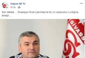 Rıza Çalımbay''ın Sivasspor ile anlaştığını Vizyon 58 tv sosyal medya hesabından duyurdu...
