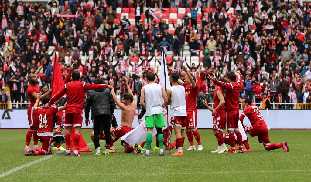 TFF 1. Lig'de Sivasspor, Yeni 4 Eylül Stadyumu'nda Bandırmaspor'u 3-0 mağlup etti. Karşılaşmanın ardından Sivassporlu futbolcular sevinç yaşadı.