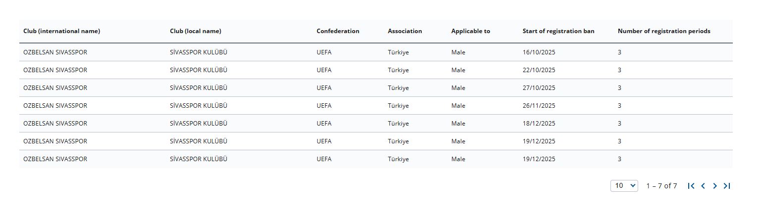 Sivasspor, Özbelsan Sivasspor, transfer yasağı, FIFA dosyaları, Sivasspor transfer, Sivasspor gündem, Türk futbolu