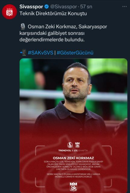 Trendyol 1. Lig’in 8. haftasında oynanan ve 0-0 sona eren Sakaryaspor-Sivasspor mücadelesinin ardından kulüp resmi hesaplarından “Sakaryaspor karşısındaki galibiyet sonrası” ifadesi kullanılması taraftarların tepkisine yol açtı. Sosyal medyada yapılan bu hatalı paylaşım, Erhan Erdoğan’ın görevinden ayrılmasının ardından oluşan boşluğu bir kez daha gündeme getirdi.