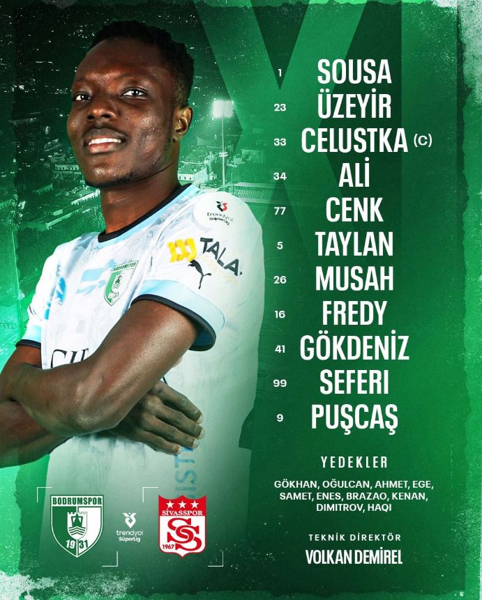 Net Global Sivasspor, Trendyol Süper Lig'in 16. haftasında bu akşam deplasmanda Sipay Bodrum FK ile karşılaşacak.