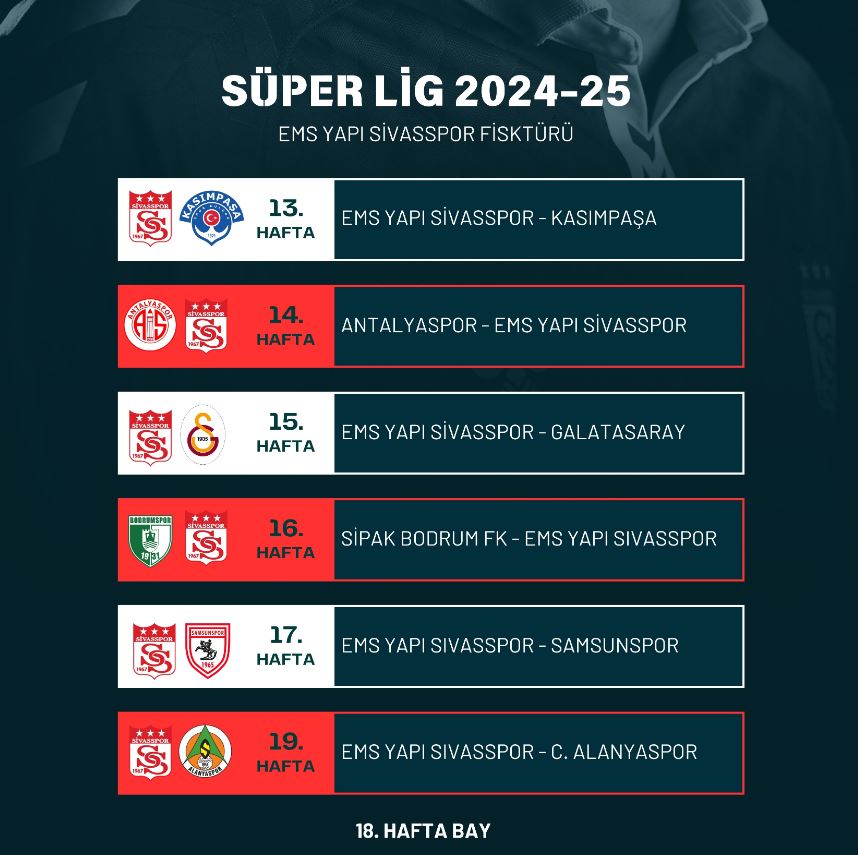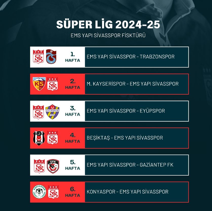 19 takımın mücadele edeceği yeni sezonda, EMS Yapı Sivasspor'un 38 haftalık fikstürü belli oldu.