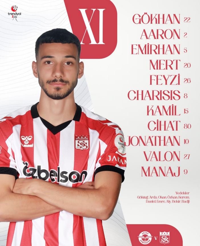Öte yandan Sivasspor’da yedek kulübesinde Gökhan, Arda, Okan, Özhan, İrem, Daniel Emre, Ali Bekir ve Bedir gibi isimler görev bekleyecek.