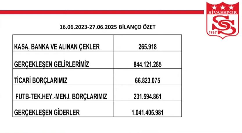 Sivasspor'un yaklaşık 198 milyon TL zararı var.