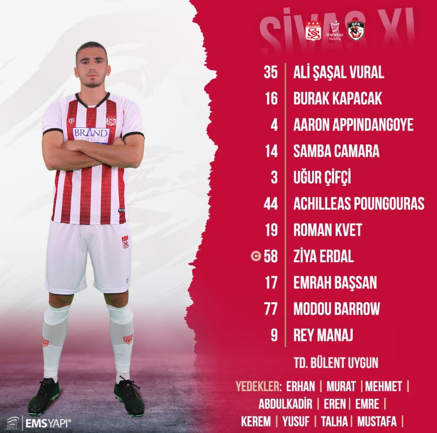 EMS Yapı Sivasspor ile Gaziantep FK arasında oynanacak maçta Sivasspor'un ilk 11'i belli oldu.