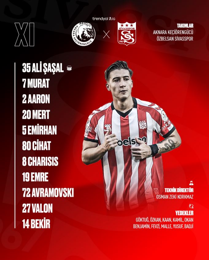 Trendyol 1. Lig’in 10. haftasında bugün saat 13.30’da oynanacak Ankara Keçiörengücü – Özbelsan Sivasspor karşılaşmasında kırmızı-beyazlı ekibin sahaya çıkacağı ilk 11 belli oldu.