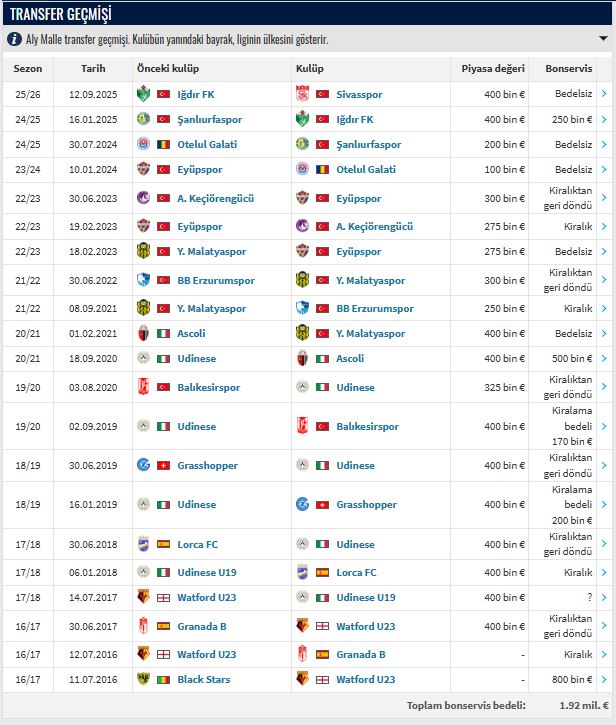 Kariyerinde toplam 1.92 milyon Euro bonservis bedeliyle kulüpler arasında transfer olan Malle, Sivasspor’da yeni bir sayfa açacak.